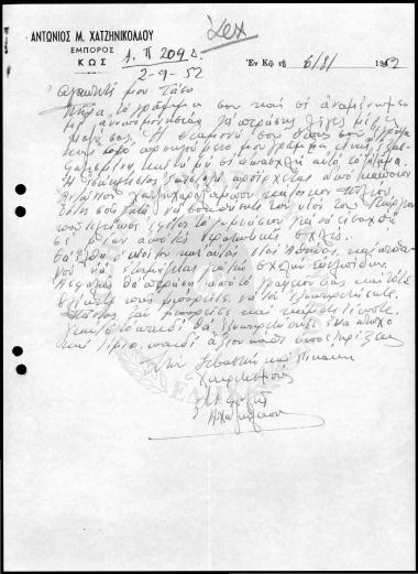 Αρχείο Αλληλογραφιών Ι.Γ. Ζίγδη (1952)