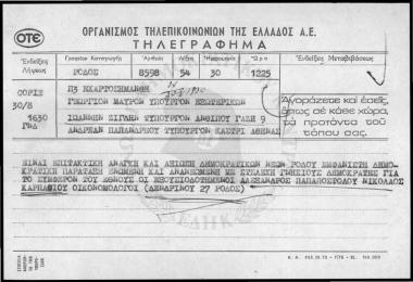 Τηλεγράφημα προς Γεώργιο Μαύρο, Ιωάννη Ζίγδη και Ανδρέα Παπανδρέου (1970)