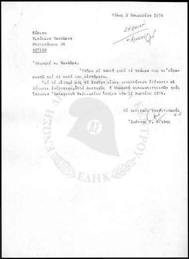 Επιστολές Ι.Γ Ζίγδη και Νικόλαου Βανδώρου