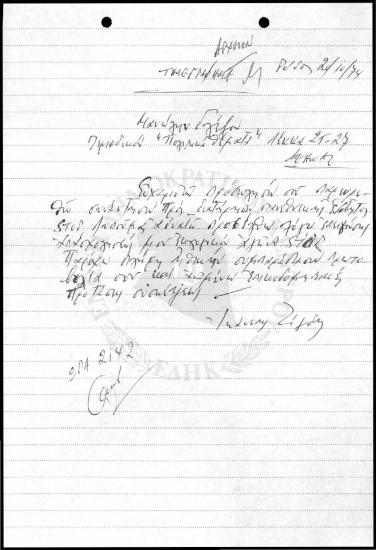 Αλληλογραφία Ι.Γ Ζίγδη (1974)