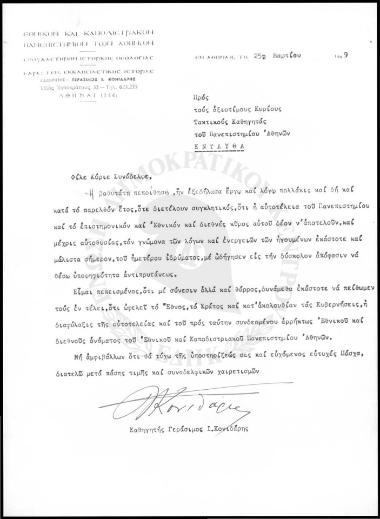Περί υποψηφιότητας Γεράσιμου Ι. Κονιδάρη για θέση αντιπρυτάνεως (ΕΚΠΑ)