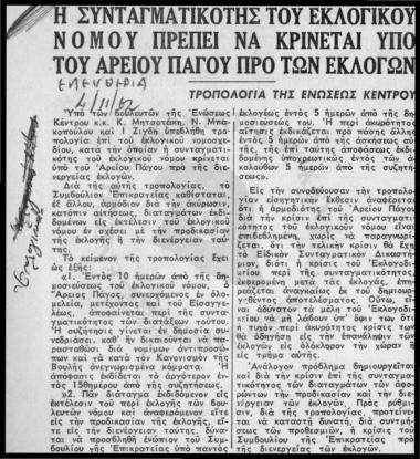 Τροπολογία Ένωσης Κέντρου-Εκλογικά