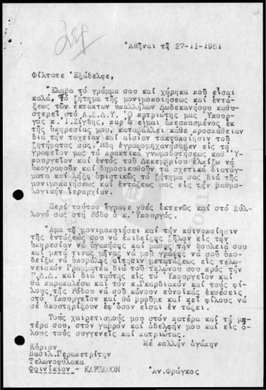 Αλληλογραφία Αν. Φράγκου και Βασιλείου Γεραπετρίτη