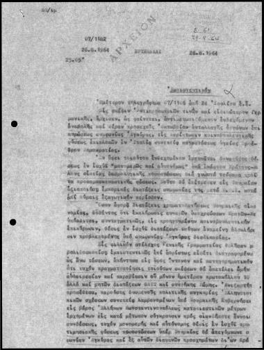 Εμπιστευτική αλληλογραφία δια τον υπουργον βιομηχανίας - 1964