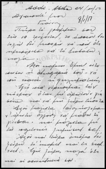 Γράμμα προς Ιωάννη Ζίγδη από Αντίς Αμπέμπα (1950)