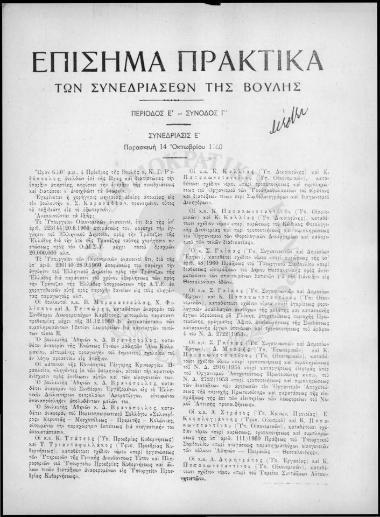 Επίσημα Πρακτικά των Συνεδριάσεων της Βουλής (Περίοδος Ε΄-Σύνοδος Γ΄-Συνεδρίαση Ε΄)-Υπόθεση Μέρτεν