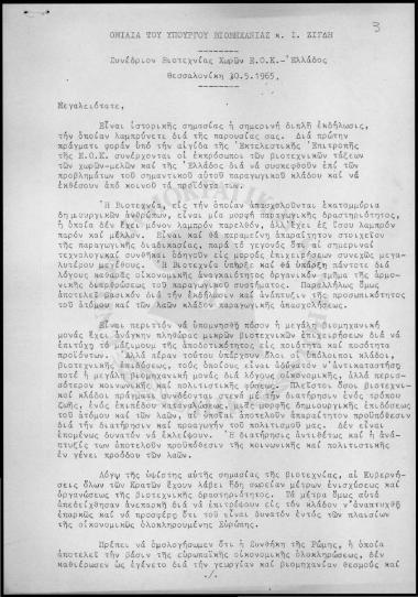Ομιλία του Υπουργού Βιομηχανίας Ιωάννη Ζίγδη στο Συνέδριο Βιοτεχνίας Χωρών Ε.Ο.Κ.-Ελλάδας στη Θεσσαλονίκη (1965)