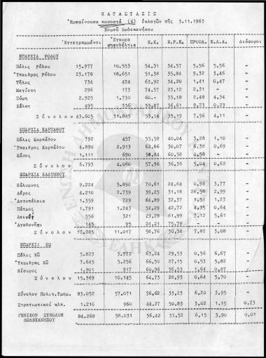 Κατάσταση με ποσοστά εκλογικής αναμέτρησης του 1963 στα Δωδεκάνησα