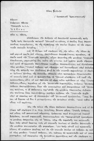 Προσωπική Εμπιστευτική επιστολή προς Γεώργιο Ράλλη