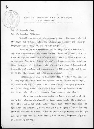 Λόγος του αρχηγού της Φ.Δ.Ε.