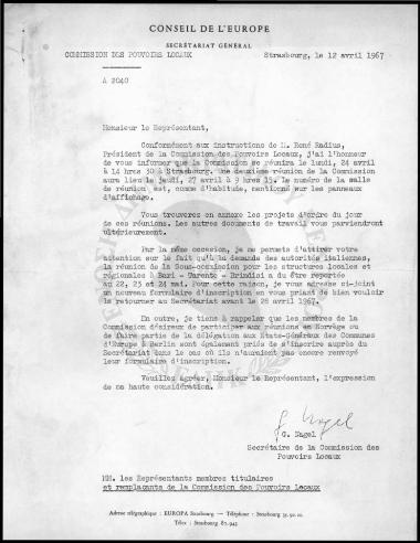 Conseil de l' Europe-Commission Des Pouvoirs Locaux (1967)