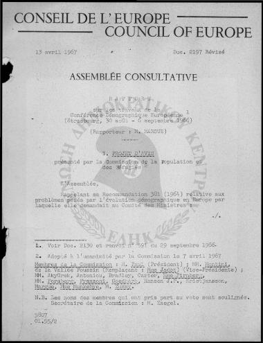 Conseil de l' Europe-Council of Europe-Conference Demographique Europeene-Recommandations (30/08-06/09/1966)