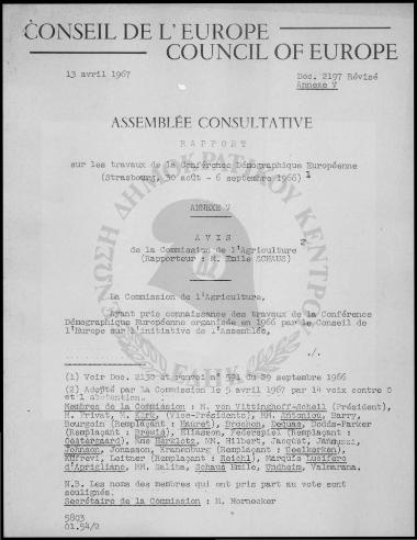 Conseil de l' Europe-Council of Europe-La Conference Demographique Europeenne (30/08-06/09/1966)