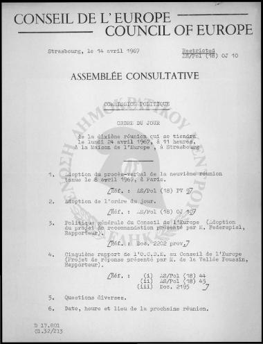 Conseil de l' Europe-Council of Europe-Commission Politique (1967)