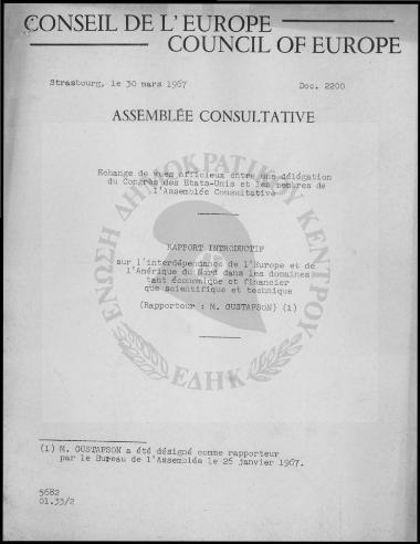 Conseil de l' Europe-Council of Europe-Enhange de vues officieux entre une delegation du Congres des Etats-Unis et les membres de l' Assemblee Consultative (1967)