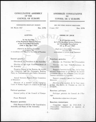 Consultative assembly of the council of Europe-Nineteenth ordinary session (24-28/04/1967)