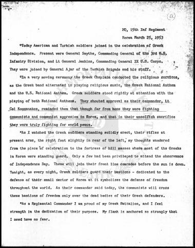 Αναφορά Colonel R. E. Akers JR. (Πόλεμος Κορέας-Ελληνικός στρατός)