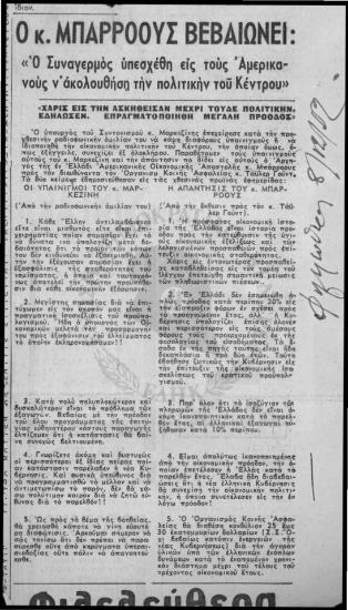 Κυβέρνηση Συναγερμού-Δηλώσεις Μαρκεζίνη και Μπάρροους-Οικονομία