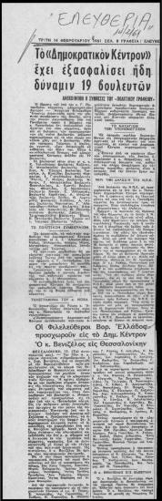 Αποκόμμα εφημερίδας "Ελευθερία" - 1961