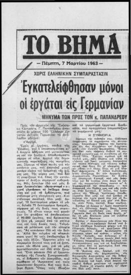 Εφημερίδα "Το Βήμα"-Περί των εργατών στην Γερμανία