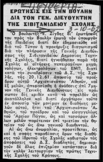 Περί της Σιβιτανίδειου Σχολής σχετικά με πλήρωση θέσεως της Γενικής Διευθύνσεως