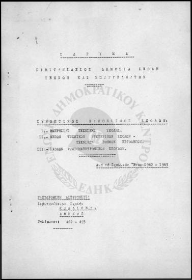 Κανονισμός Σχολών-Ίδρυμα Σιβιτανίδειος Δημόσια Σχολή Τεχνών και Επαγγελμάτων (1962-1963)