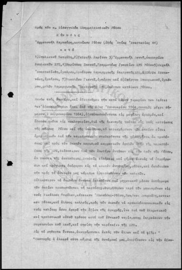 Μήνυση Εμμανουήλ Καμπούρη κατοίκου Ρόδου κατά μελών Νομαρχιακής Επιτροπής ΕΡΕ