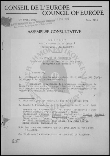 Conseil de l' Europe-Council of Europe-Η Ελληνική κατάσταση την περίοδο της Δικτατορίας (M. Dankert)