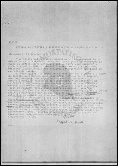 Conseil de l' Europe: Declaration de m. gaston thorn sur la grece