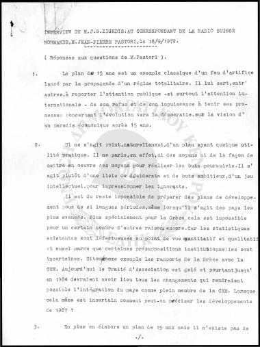 Συνέντευξη Ι.Γ. Ζίγδη σε Ελβετικό Ραδιοφωνικό Σταθμό