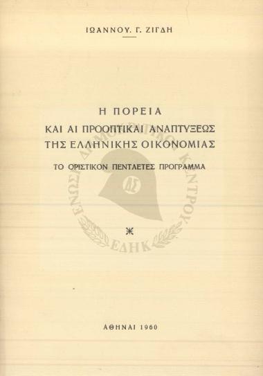 Η Πορεία και αι προοπτικαί αναπτύξεως της Ελληνικής Οικονομίας-Το οριστικόν πενταετές πρόγραμμα
