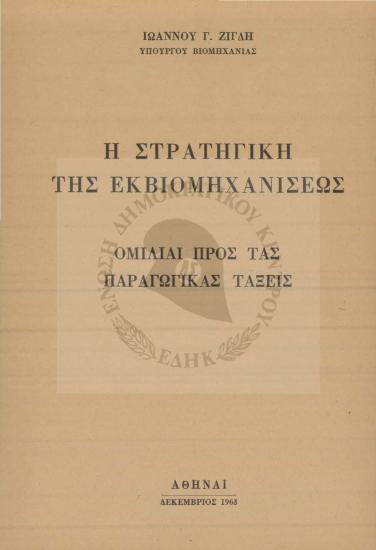 Η Στρατηγική της Εκβιομηχανίσεως-Ομιλίαι προς τας παραγωγικάς τάξεις