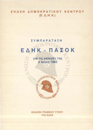 Συμπαράταξη ΕΔΗΚ - ΠΑΣΟΚ για τις εκλογές της 2 Ιούνίου 1985