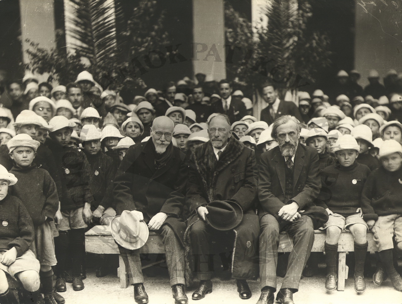 Ο Ελ. Βενιζέλος με αποκατασταθέντα προσφυγόπουλο το 1924. Διακρίνεται ο Υπουργός Πρόνοιας Δοξιάδης