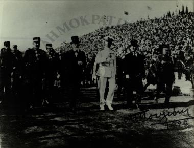 Γιορτή στο Παναθηναϊκό Στάδιο. Διακρίνονται ο Βασιλιάς Αλέξανδρος και ο Ελ .Βενιζέλος