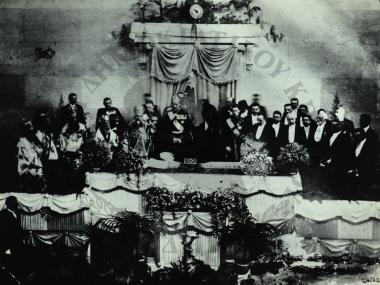 Ο Ελ. Βενιζέλος στην Βουλή σαν Πρωθυπουργός ορκίζει τον Κωνσταντίνο μετά την δολοφονία του Γεωργίου Α'