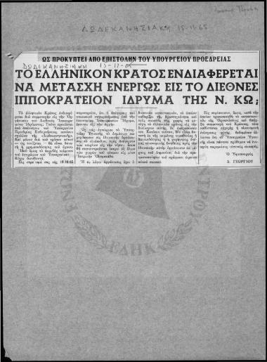 Απόκομμα της εφημερίδας "Δωδεκανησιακή" - 1965
