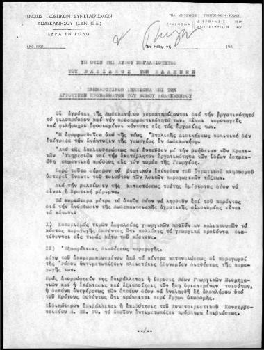 Σημείωμα επί των αγροτικών προβλημάτων στα Δωδεκάνησα