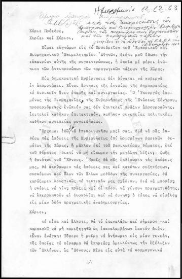 Ομιλία Υπουργού Βιομηχανίας Ι.Γ. Ζίγδη προς τους εκπροσώπους των εμπορικών και βιομηχανικών επιμελητηρίων, των βιομηχανικών οργανώσεων και των παραγωγικών τάξεων
