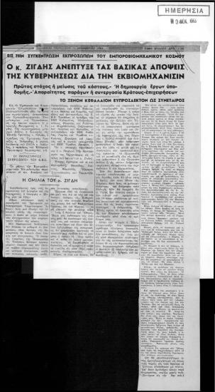 Οι απόψεις της κυβερνήσεως περί εκβιομηχάνισης