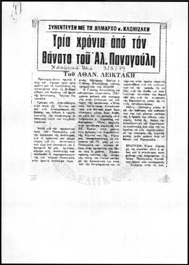 Χανιώτικα Νέα-Συνέντευξη Κλωνιζάκη μετά τη συμπλήρωση τριών χρόνων από τον θάνατο του Παναγούλη