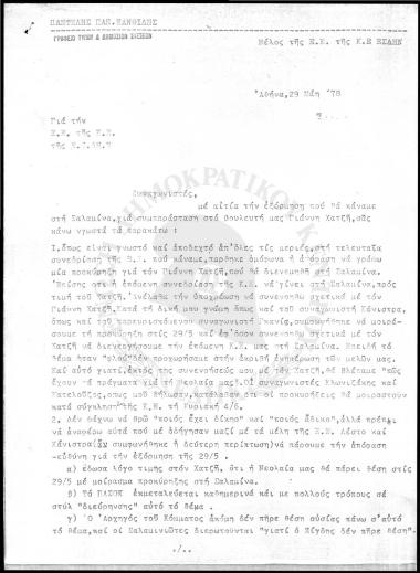 Επιστολή Παντελή Παν. Ξανθίδη προς την Κ.Ε της Ε.Σ.ΔΗ.Ν