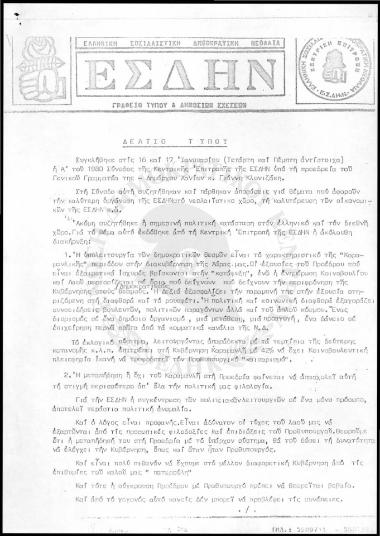 Δελτία Τύπου ΕΣΔΗΝ-Α΄Σύνοδος της Κεντρικής Επιτροπής ΕΣΔΗΝ (1980)