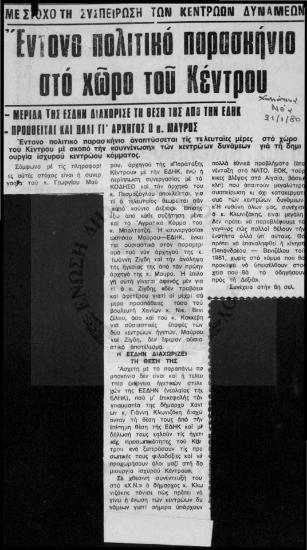 Έντυπος Τύπος--Παρασκήνιο στο χώρο του Κέντρου (1980)