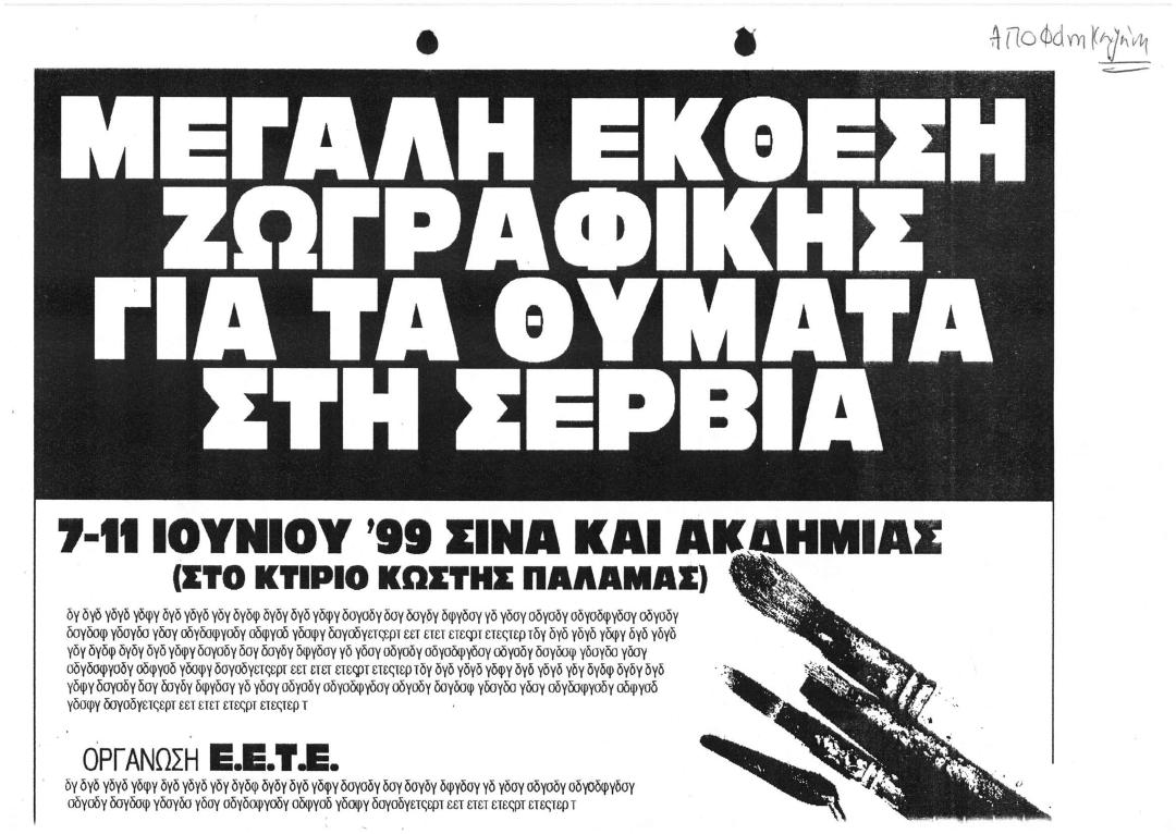 Έκθεση - Προσφορά: Μεγάλη Έκθεση Ζωγραφικής, Γλυπτικής, Χαρακτικής για τα θύματα στη Γιουκοσλαβία