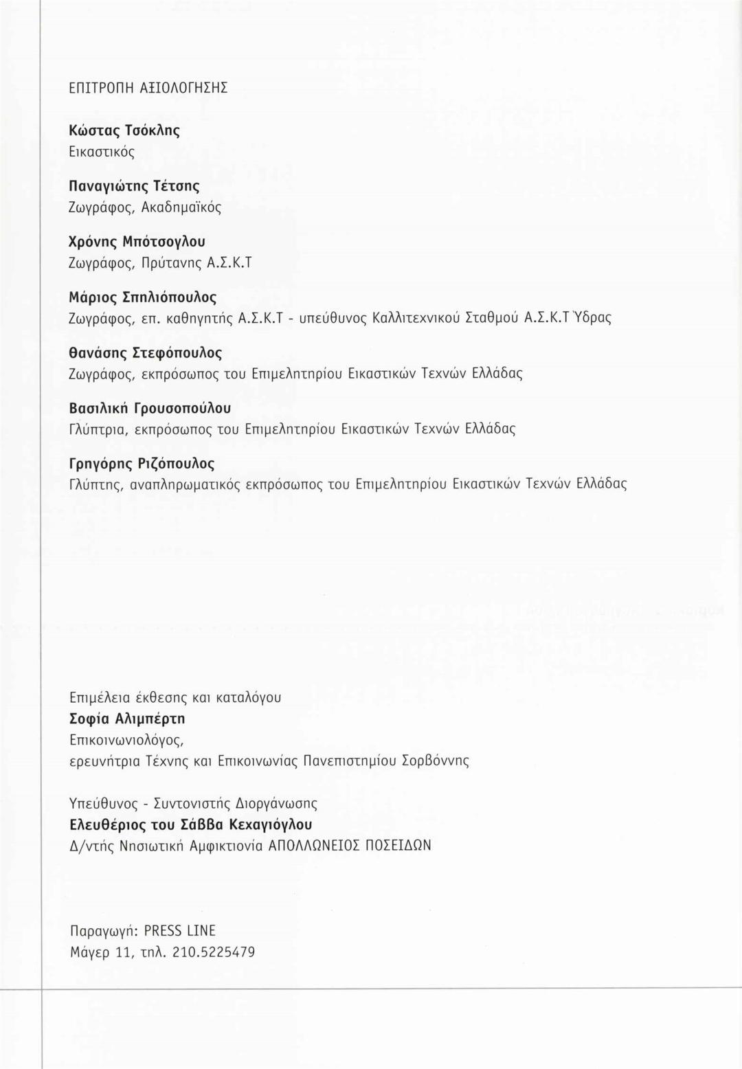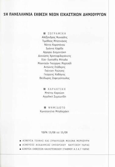 - Έκθεση: 1η Πανελλήνια Έκθεση Νέων Εικαστικών Δημιουργών