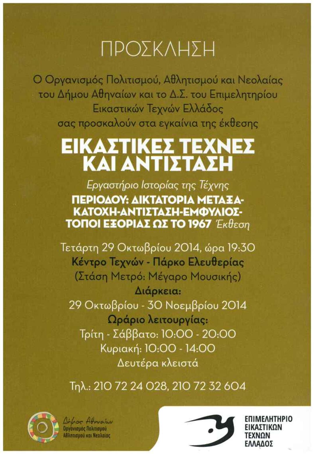 Εγκαίνεια Έκθεσης: Εικαστικές Τέχνες και Αντίσταση / Αντίσταση τώρα