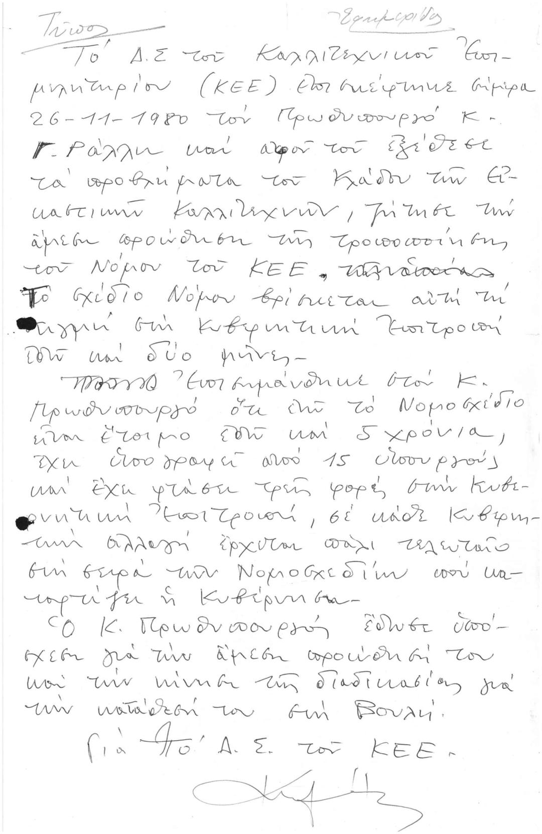 Επισκεψη ΔΣ στον Προθυπουργό κ. Γ. Ράλλη