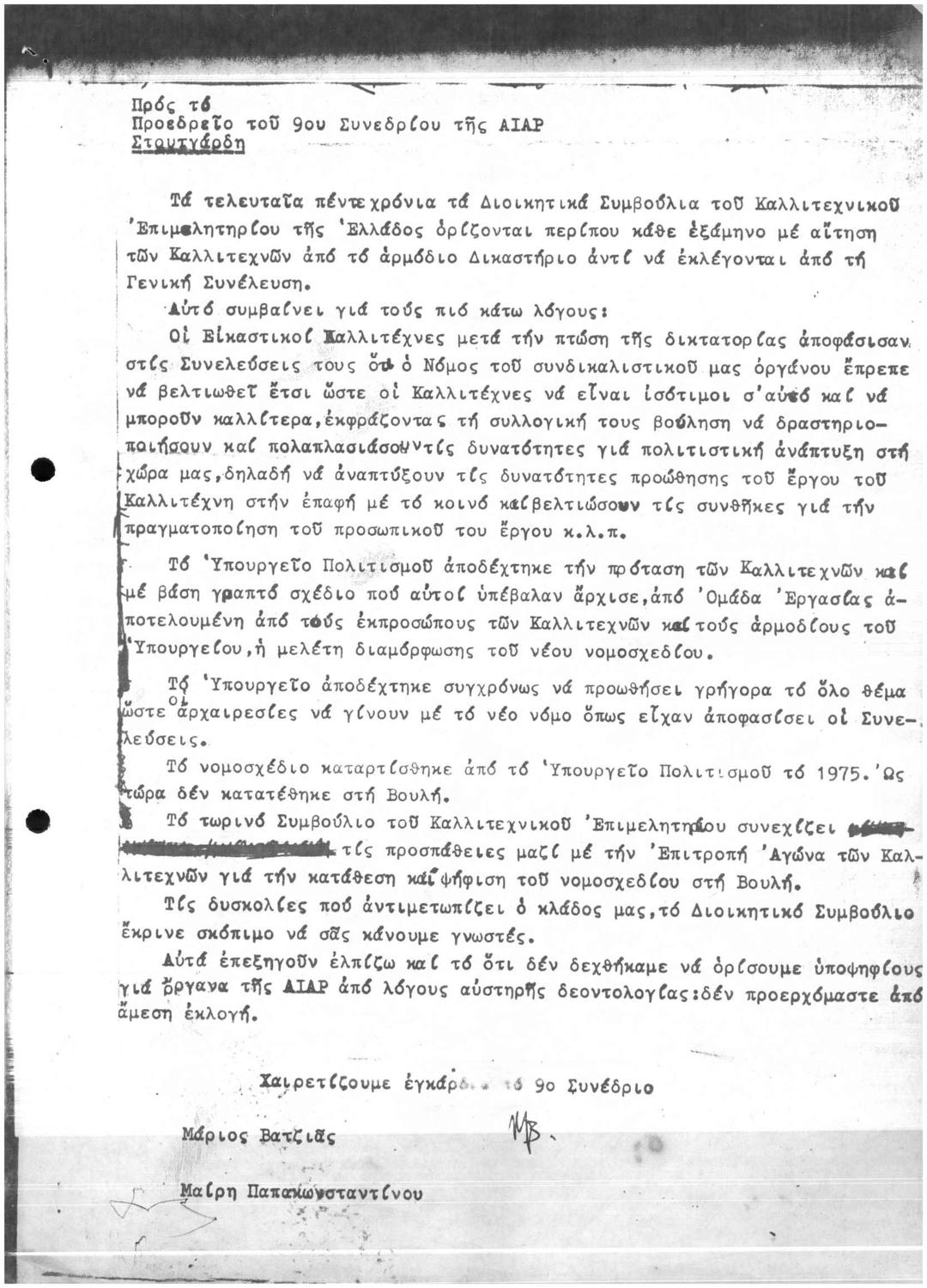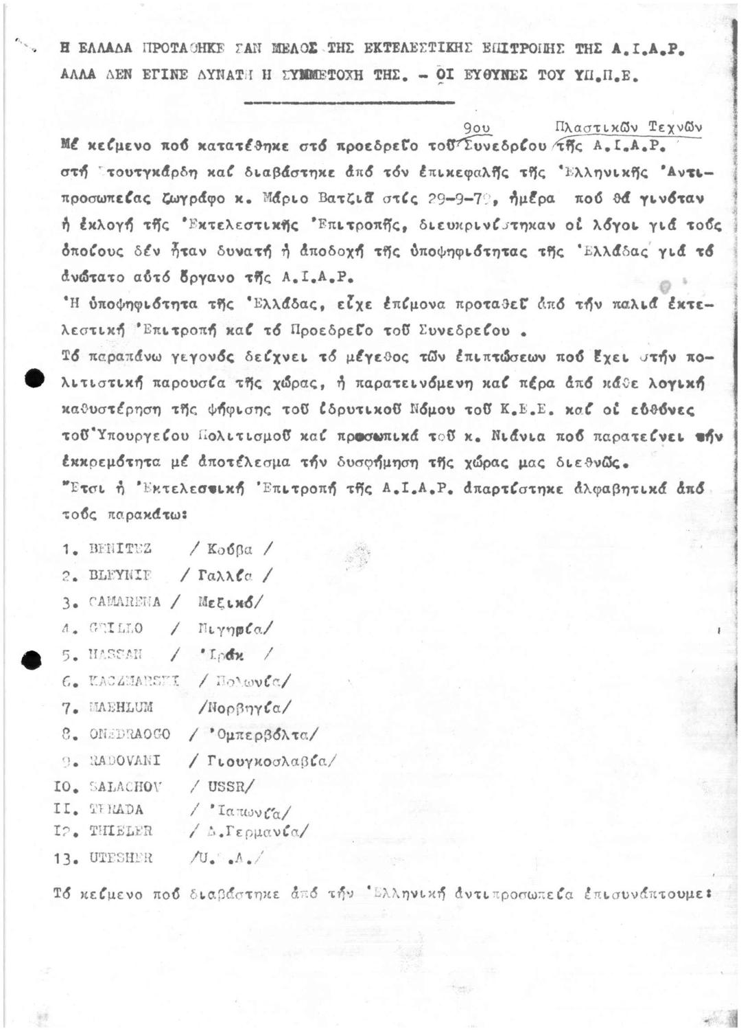 Η Ελλάδα Προτάθηκε σαν Μέλος της Εκτελεστικής Επιτροπής της A.I.A.P Αλλά δεν έγινε Δυνατή η Συμμετοχή της - Χαιρετισμός 9ου Συνεδρίου της A.I.A.P