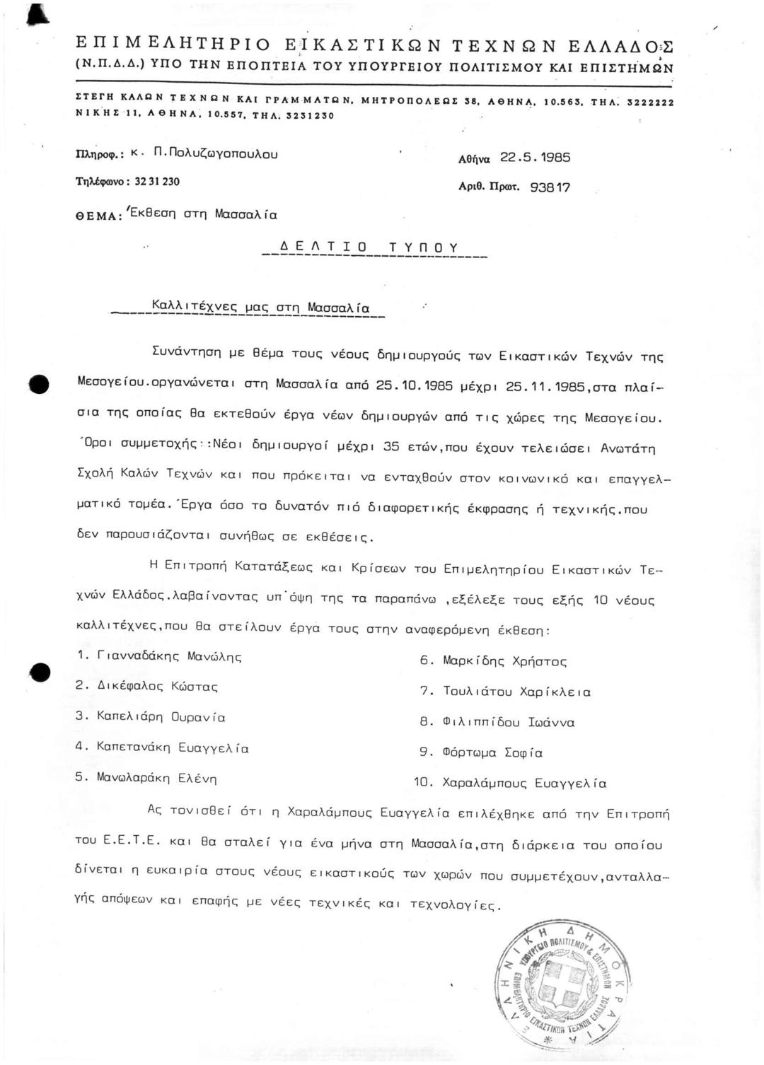 Archive Of The Chamber Of Fine Arts Of Greece